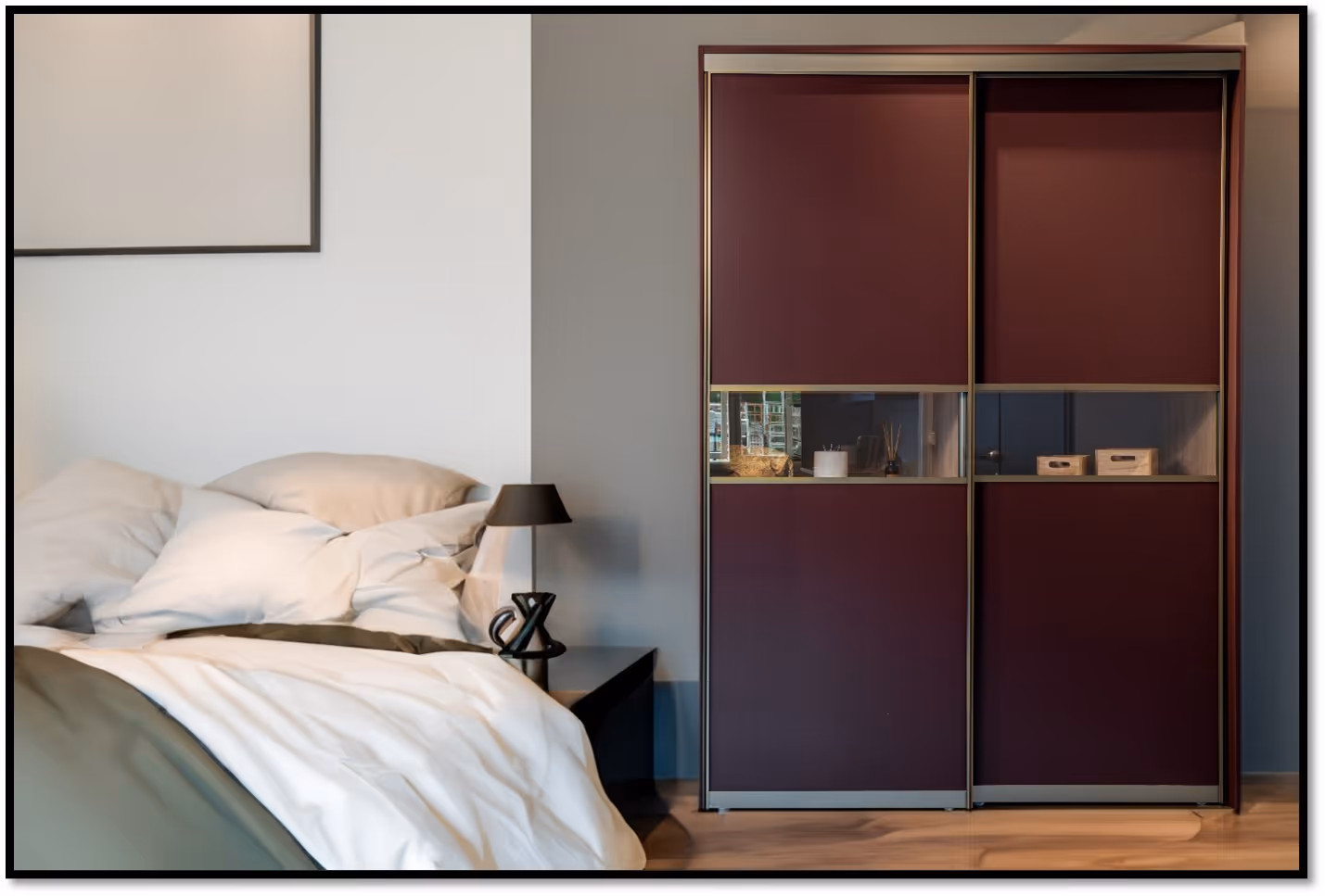 En av de store fordelene med lakkerte dører fra Rival er fleksibiliteten i utformingen. Dørene kan leveres som tradisjonelle dører medet tidløst og elegant preg, som slagdører for en klassisk og funksjonell garderobe, eller kombineres med aluminiumsomramming for et strammere og mer moderne uttrykk. Dette gir stor frihet til å velge den løsningen som passer best til både rommet og stilen i boligen.